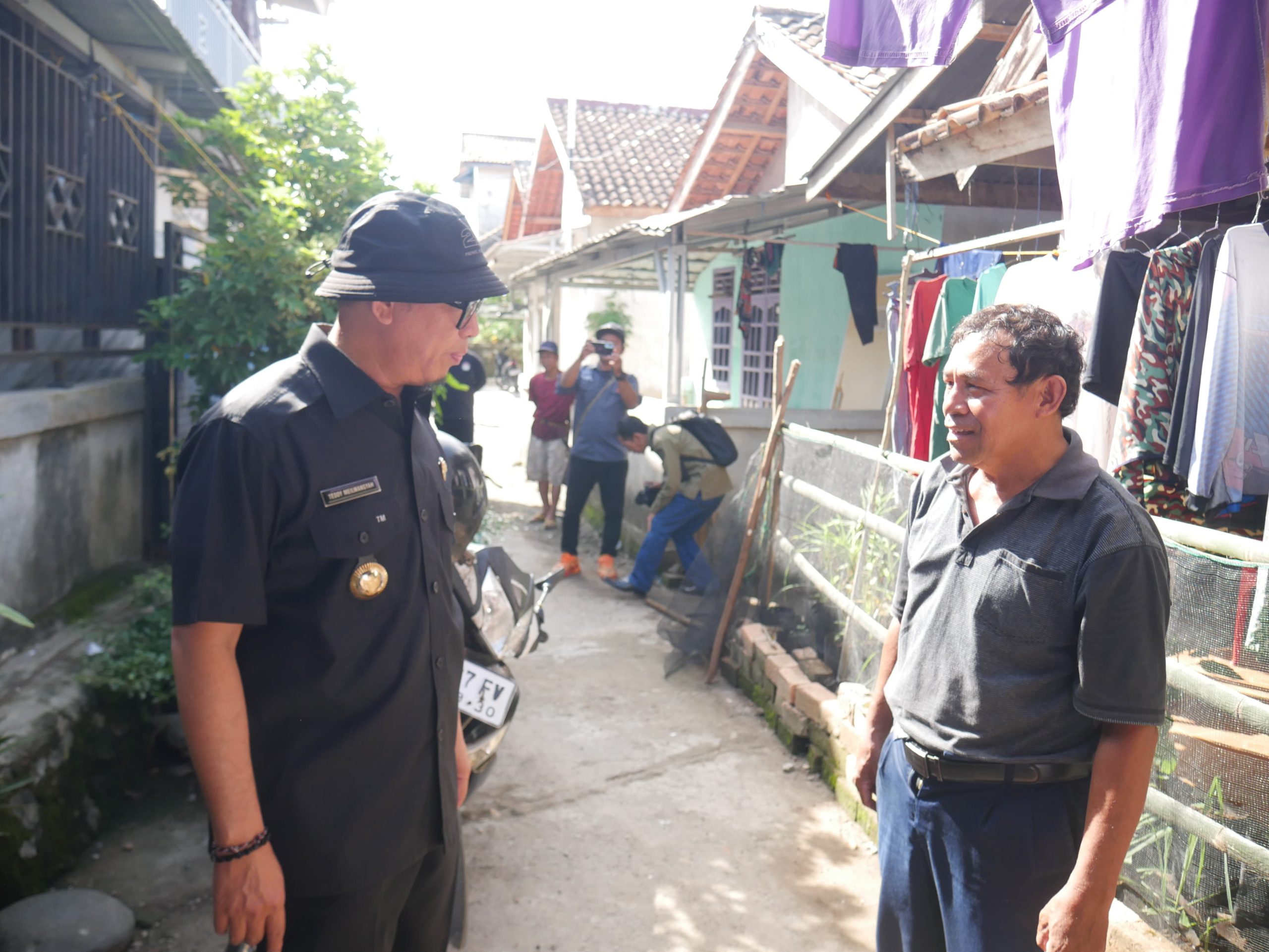 Dalam kunjungannya, Bupati Teddy menyempatkan diri menyapa warga RT 14 RW 04 Kelurahan Kemalaraja, mendengarkan langsung keluhan masyarakat terkait pendangkalan saluran air dan tumpukan sampah yang kerap menutup aliran siring.
