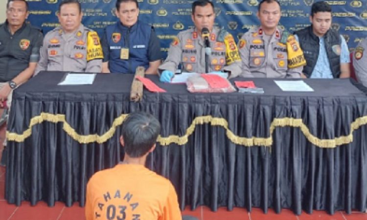 Ogannews.com – Kapolres OKU Timur, AKBP Dwi Agung Setyono SIK MH, bersama Waka Polres Kompol Polin Pakpahan, Kasat Reskrim AKP Mukhlis SH MH, dan Kapolsek Madang Suku I AKP Dwi Hendro, menggelar konferensi pers terkait penangkapan pelaku pembunuhan Umi Astuti (16), siswi kelas 10 SMK Muhammadiyah Belitang.