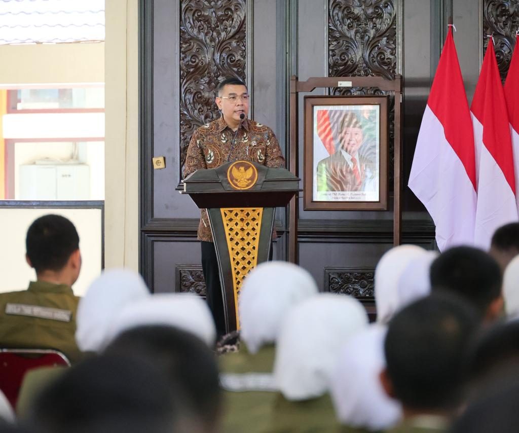 “Kegiatan KKNP-PTLP ini sejalan dengan arahan Presiden Republik Indonesia, Prabowo Subianto, yang secara konsisten menekankan pentingnya peningkatan kualitas SDM sebagai fondasi pembangunan nasional, termasuk apa yang kita lakukan di bidang pertanahan,” ujar Wamen Ossy saat melepas 619 Taruna/i STPN, di Pendopo Sasana Widya Bhumi, STPN, Sleman, DIY, Senin (09/02/2026).