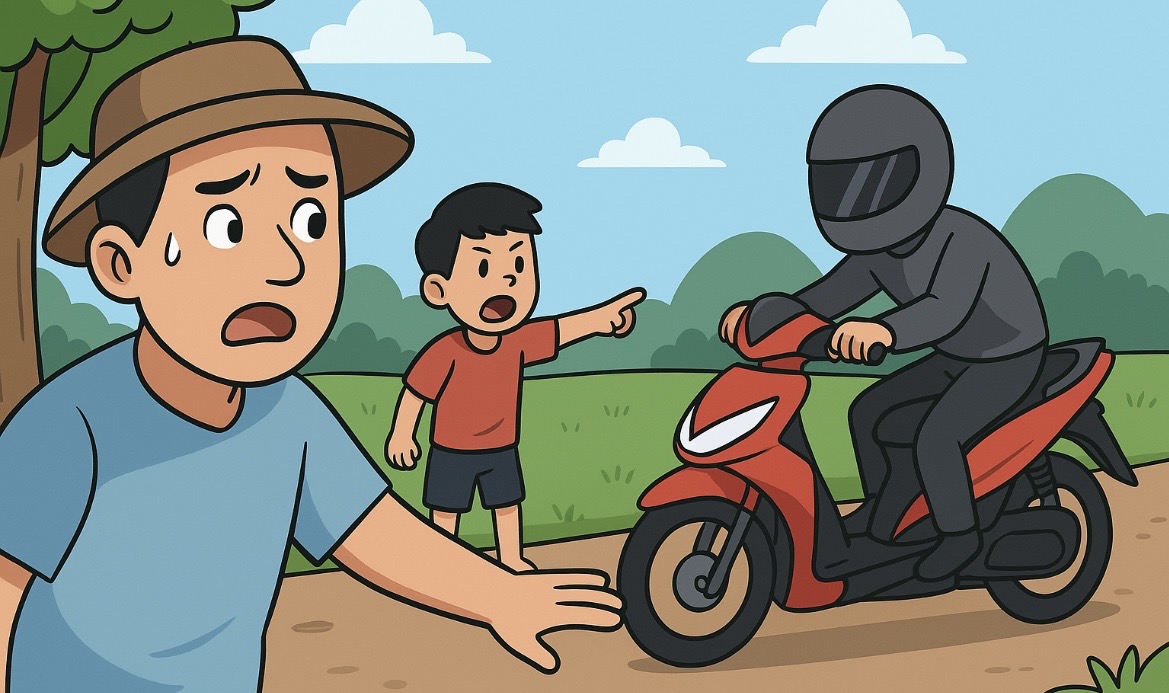 Motor tersebut masih dalam keadaan kunci kontak menempel. Anak korban yang berusia 7 tahun bahkan sempat berteriak melihat pelaku beraksi.