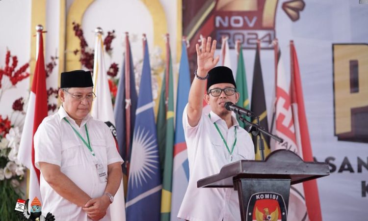 Didampingi oleh 15 partai politik pengusul dan ribuan relawan serta simpatisan, Teddy dan Marjito yang mengusung jargon BERTAJI (Bersih, Taqwa, Amanah, Jujur, dan Inovatif) terlihat penuh semangat saat menyerahkan berkas pendaftaran mereka.