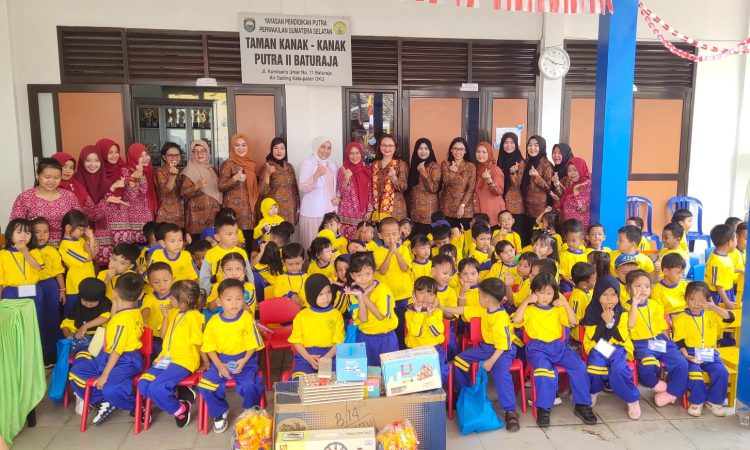 Selama kunjungan, rombongan turut menyerahkan tujuh paket mainan indoor dan seragam untuk para guru di TK Putra II Baturaja.