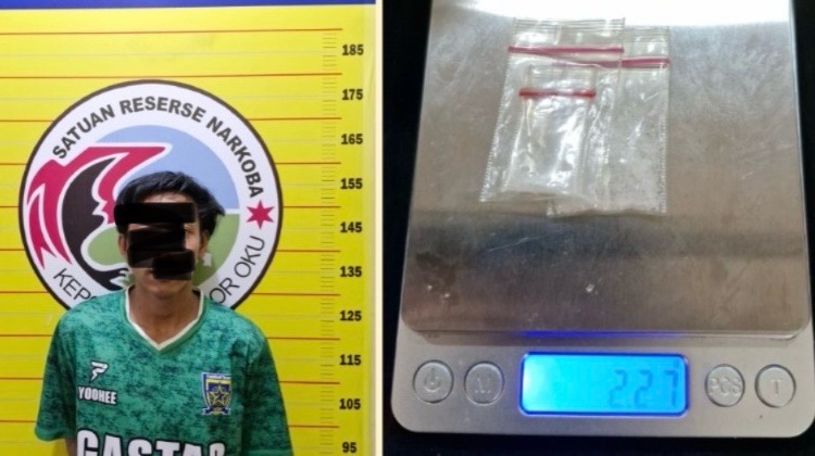 Kapolres OKU AKBP Imam Zamroni melalui Kasi Humas Polres OKU AKP Ibnu Holdon membeberkan barang bukti yang berhasil diamankan, yakni sebuah kotak rokok yang berisi tiga bungkus plastik klip bening dengan isi kristal-kristal bening diduga sabu seberat 2,27 gram, dua buah skop plastik, empat bungkus plastik klip kosong, sebuah celana pendek warna abu-abu, uang tunai sebesar Rp 100 ribu, dan satu unit handphone.